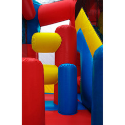 *Ideas for large events/lots of kids: NOTE: Only 1 combined entrance/exit on inflatable. 1) One way path concept: Kids may enter, go right and make a loop (one time through the obstacle tunnel, obstacle lane, up and down the slide and back out completing 1 lap around the unit); 2) Limit time (e.g. 5 min per group); 3) limit # of kids inside no one enters until someone leaves.